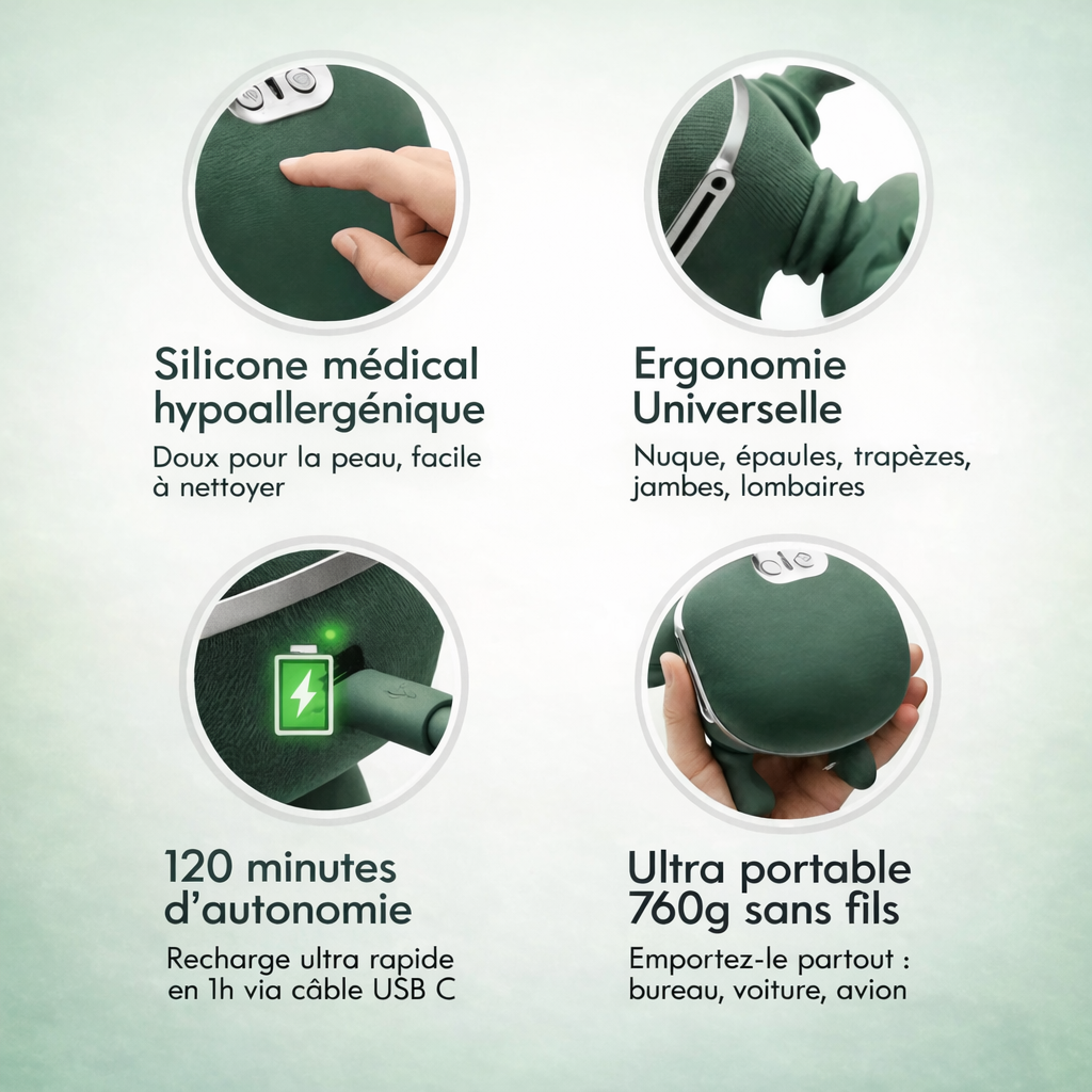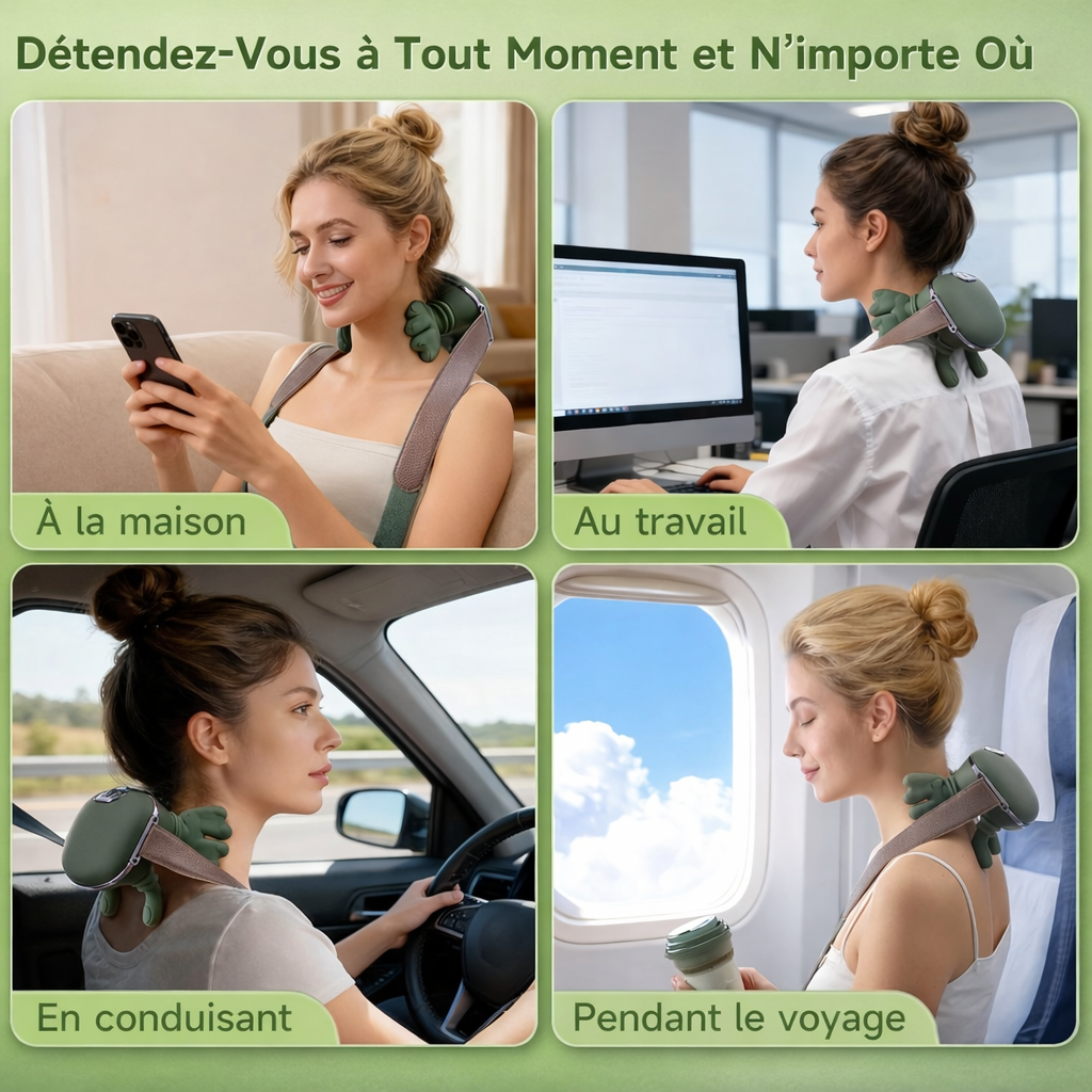 Oui ! Bien qu'il soit principalement conçu pour la nuque et les épaules, vous pouvez l'utiliser sur les mollets, les cuisses, le bas du dos et même les bras. Son design ergonomique s'adapte à différentes zones musculaires.
